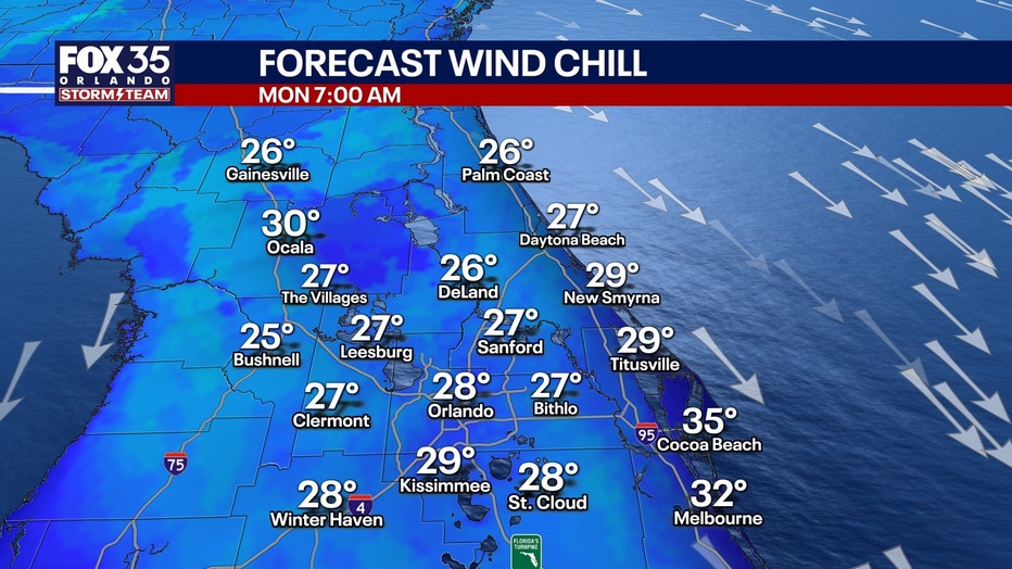 Freeze Watches have been issued for just about all of Central Florida, including Orlando. Wind chills will only be in the 20s, so be sure you bundle up if you’re heading out the door early.Â