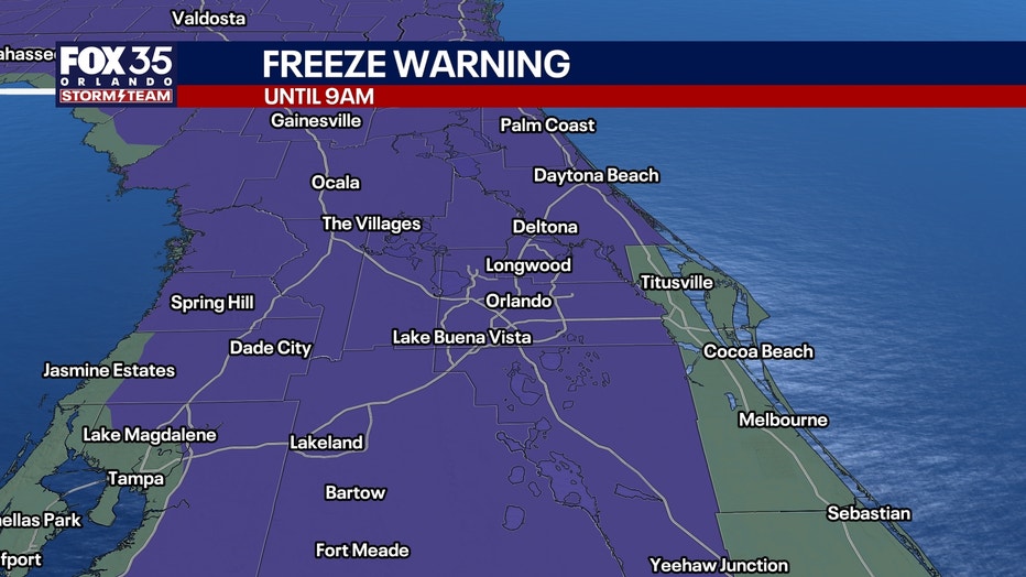 ORLANDO, Fla. – Cold and winter-like temperatures have returned this morning around Central Florida. A Freeze Warning is in place for all counties except Brevard until 9 a.m.Â
