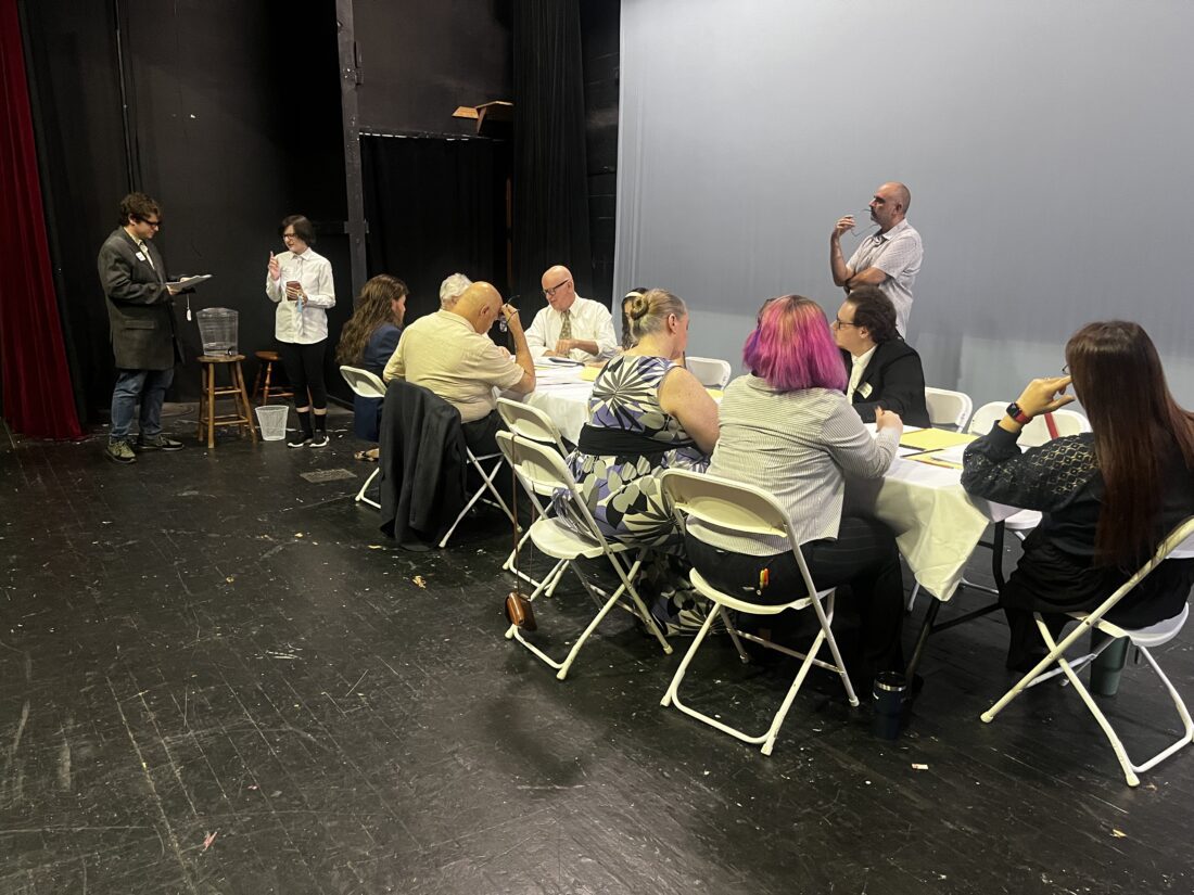The cast of “12 Angry Jurors” rehearse. PROVIDED