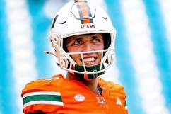 Carson Beck #11 of the Miami Hurricanes warms up prior to a game against the Ohio State Buckeyes.
