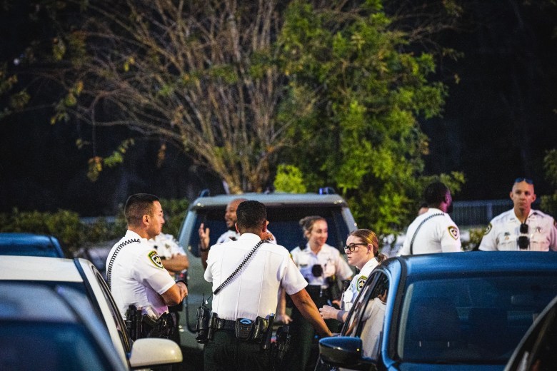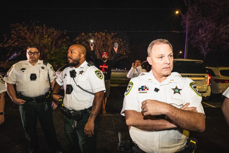 Mourners speak with Hillsborough County Sheriffs in Tampa, Florida on Jan. 11, 2026. Credit: Dave Decker / Creative Loafing Tampa Bay