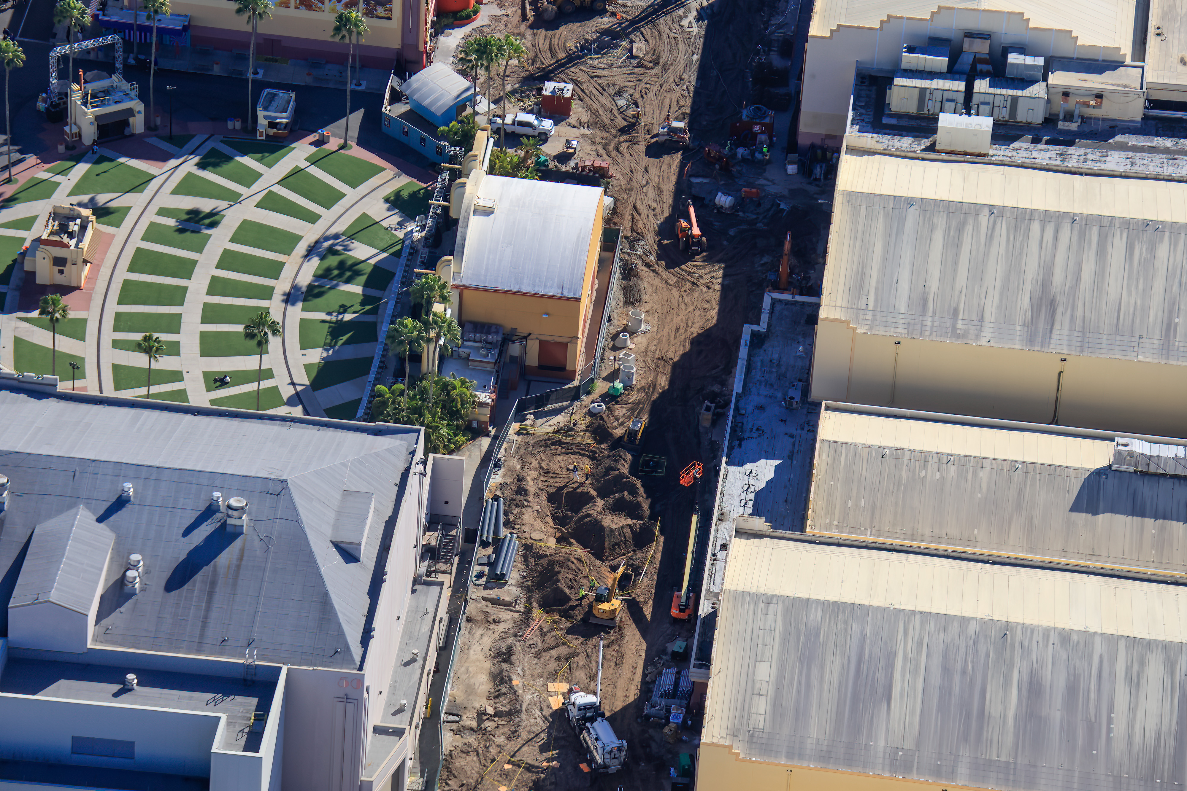 The next area to get coaster footings will be the skinny section of the footprint between the theme park and the sound stages.