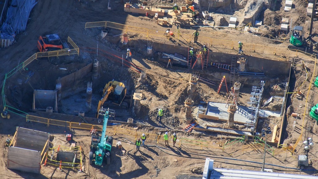 Coaster footings have been installed throughout much of the new ride’s layout, and just this month steel starting going up for the maintenance building.