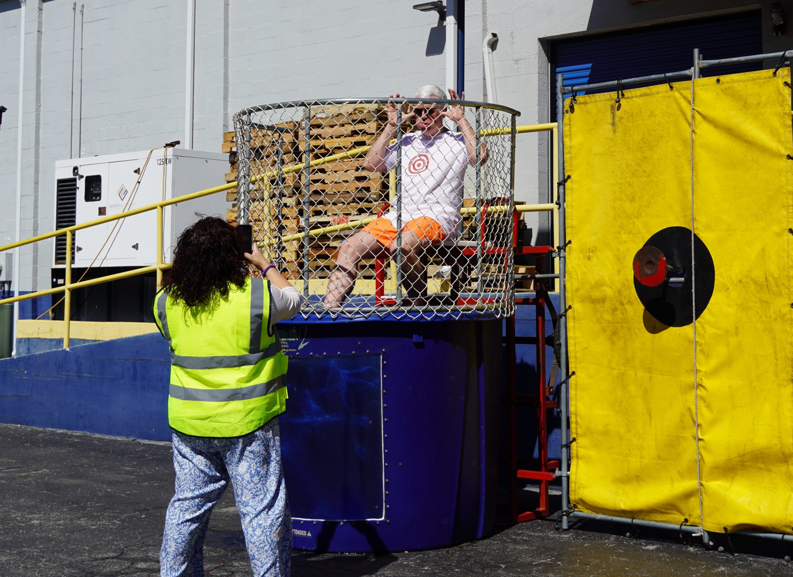 Richard LeBer, president and CEO of Harry Chapin Food Bank, pans for the camera while awaiting his fate in the dunk tank. -COURTESY PHOTO
