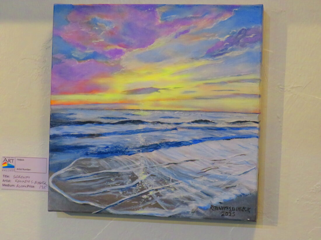 “Serenity,” an acrylic painting by Kenneth S. Bubeck, one of many artworks on display at the Fort Myers Beach Art Association’s “Cool to be Square” show is running at the association’s gallery at Cypress Square on McGregor Boulevard in Fort Myers. Photo by Nathan Mayberg
