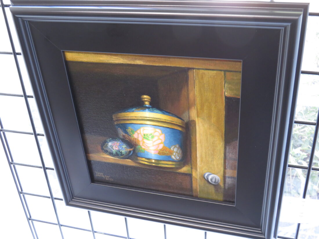 “Brass enameled jar” oil on linen panel by Paul Mollon