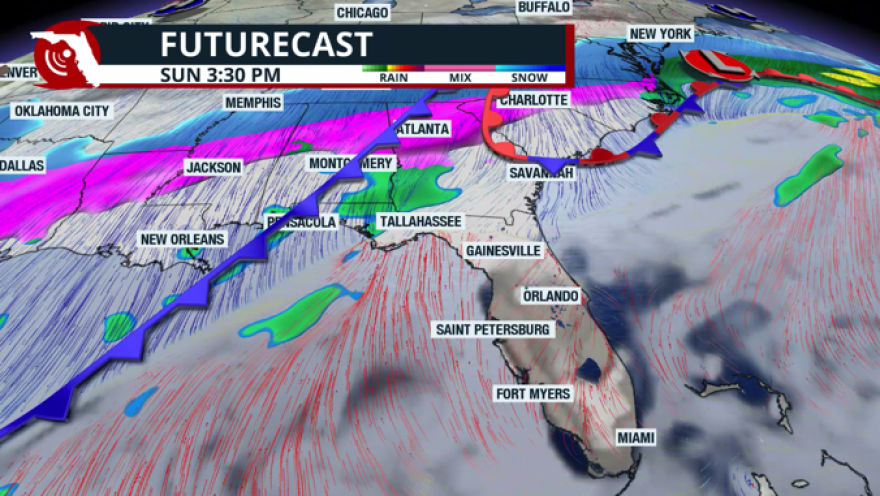 There is a chance of severe storms in Florida as the front approaches