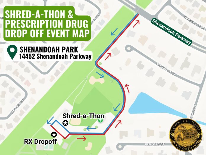 On Saturday, February 7, 2026, the Town of Davie will host a free Shred-A-Thon and Prescription Drug Drop-off event for Davie residents. The event will take place at Shenandoah Park, located at 14452 Shenandoah Parkway, from 9 to 11 a.m. or until the disposal trucks reach capacity.