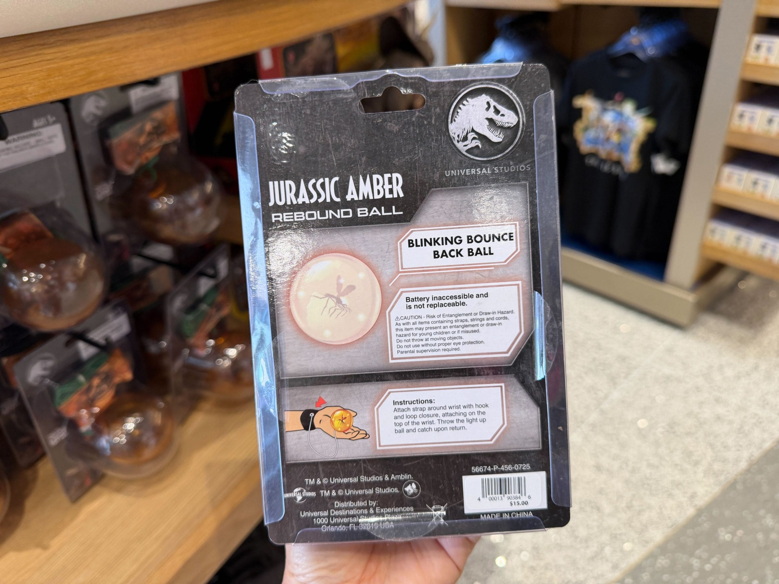 Universal Orlando Resort has released a new light-up rebound ball toy themed to John Hammond’s mosquito in amber from Jurassic Park.