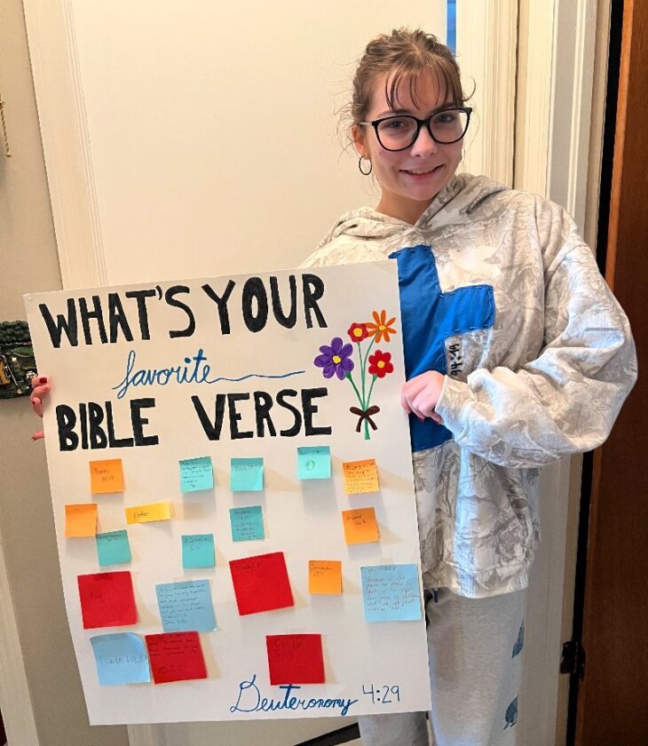 Students wrote their favorite Bible verses on a posterboard, which Anna described as a “success.”