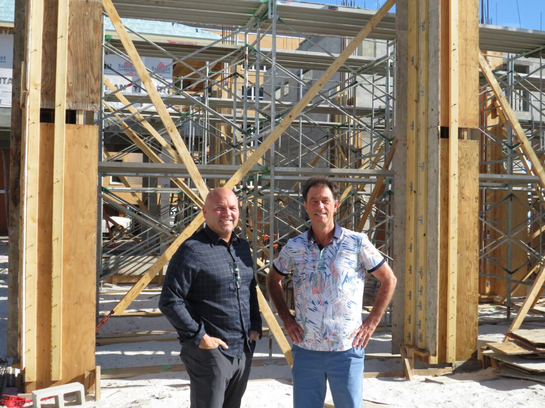 Realtors Marc Taglieri (left) and Alex King (right) of the Alex King Group stand in front of a home under construction on the 700 block of Estero Boulevard. Photo by Nathan Mayberg