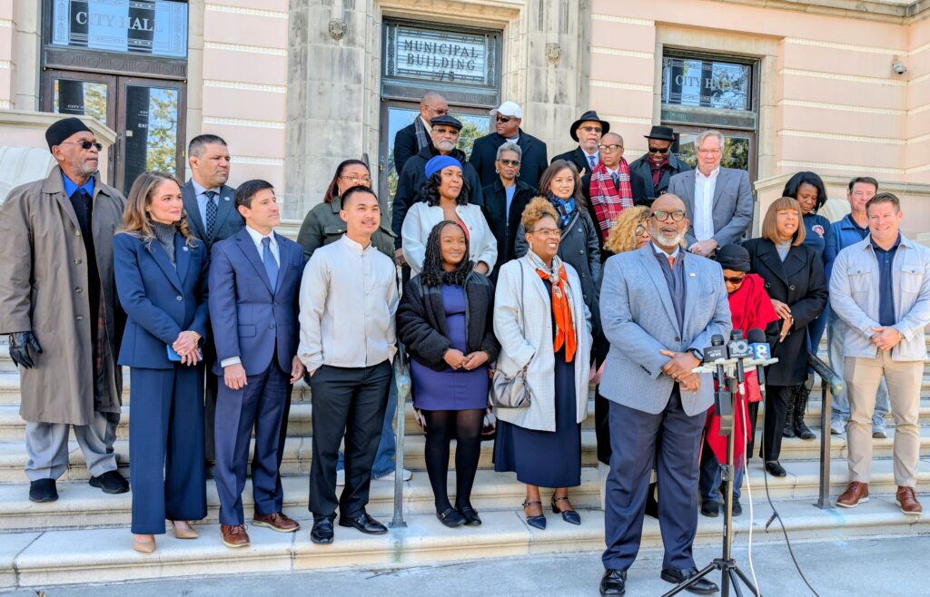 Dozens of supporters representing various local organizations stood behind Mayor Ken Welch as he made the announcement.
