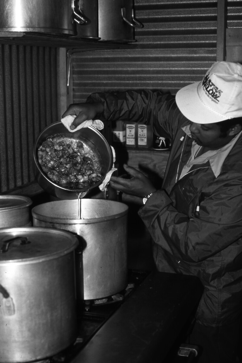 Photographed in March 1988, Hiram Jenkins cooks chicken stock for a perloo dish at his barbecue stand in Mandarin. Hiram’s BBQ was also known for its ribs and collard greens. | State Archives of Florida
