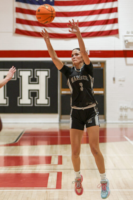 Mariner shooting guard Calleigh Buzard squares up and drains the long range 3-point shot. MARK CLIFFORD