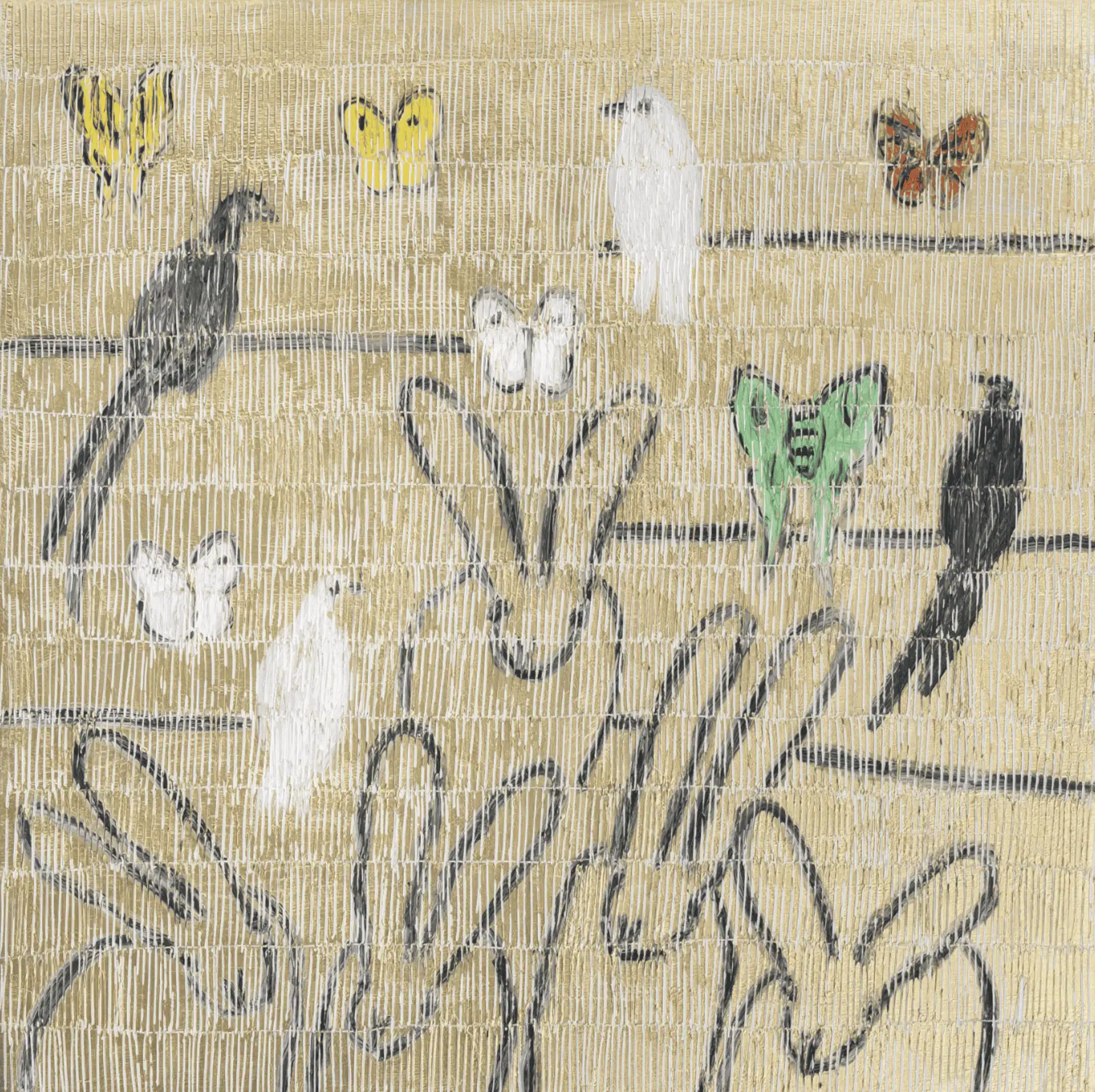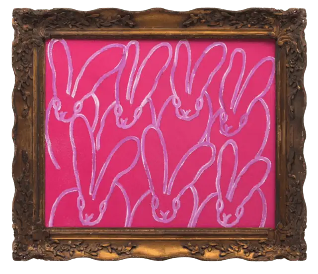 Slonem’s most sought-after works center on recurring motifs, including bunnies (his most collected and enduring subject), tropical birds inspired by his long-standing personal aviaries, and butterflies that explore themes of transformation, vitality, and movement. These subjects are rendered through bold color palettes, expressive brushwork, and rhythmic repetition, resulting in richly layered surfaces that command presence.