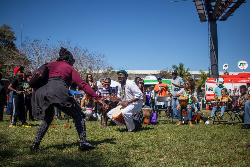 African drummer Healing Fyah gets the crowd moving at the 2023 Tampa Bay Collard Green Festival.
