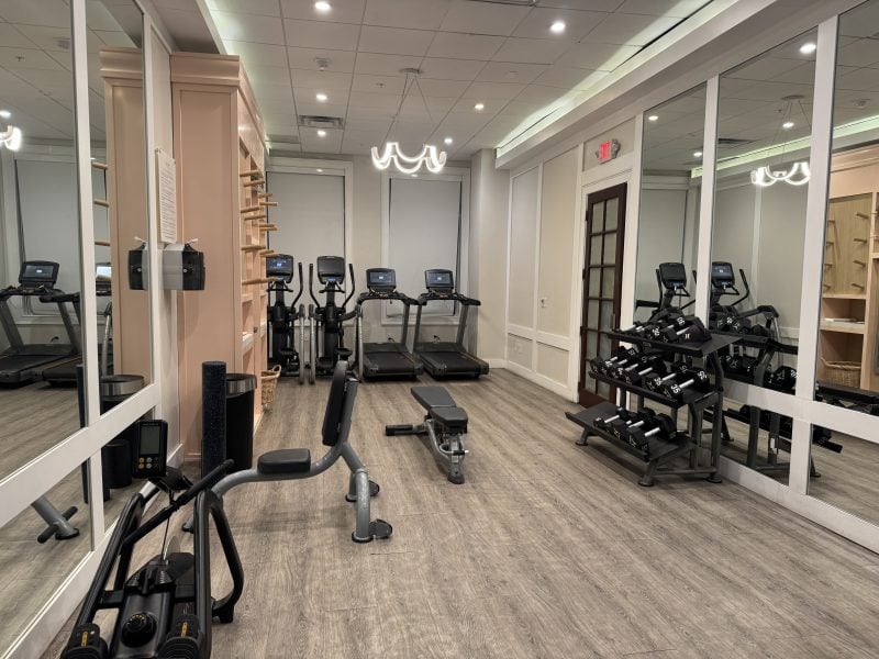 If you need to work off some of the great meals you’ll have, the fitness center is open 24/7, has Matrix treadmills, ellipticals, rowing machine, and a full body exercise machine, free weights, yoga mats, and exercise balls.