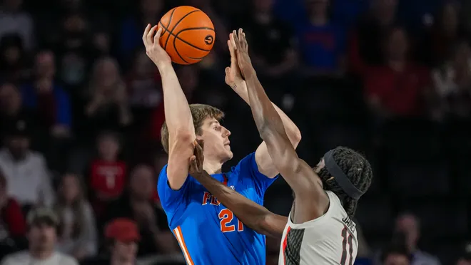 In his latest college basketball power rankings, ESPN’s Jeff Borzello moved the Gators up two spots from No. 12 to No. 10, signaling growing confidence in a team that appears to be hitting its stride at the right time.