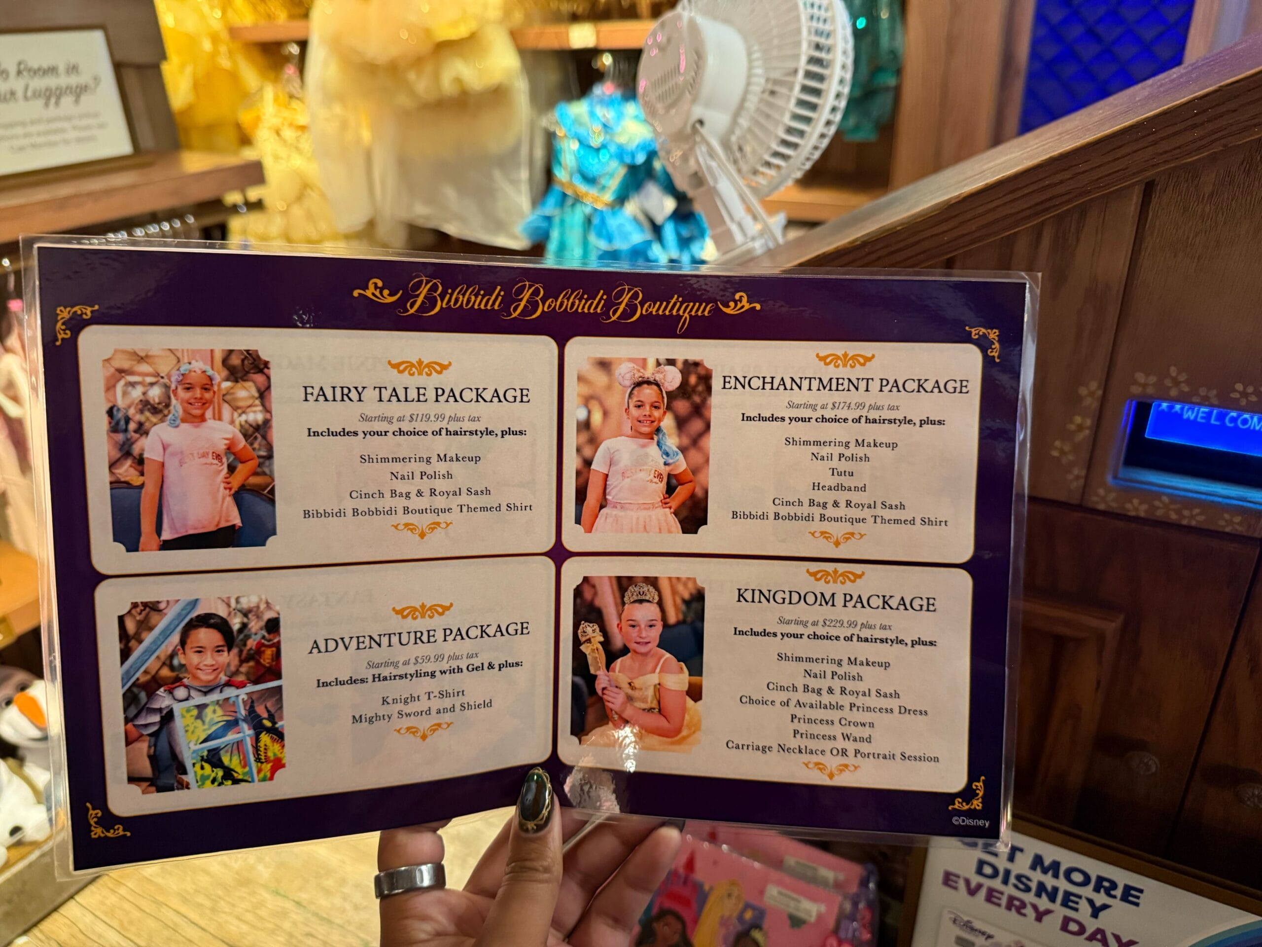 Bibbidi Bobbidi Boutique rolled out several changes at both Magic Kingdom and Disneyland last fall. There was previously an Encanto package, but this was removed when they simplified options down to just four packages at Disneyland and three at Magic Kingdom.