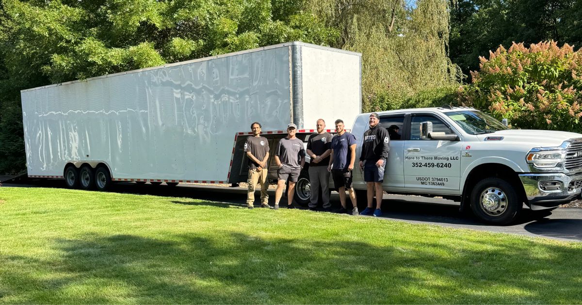 The Here To There Moving LLC team standing beside their moving truck, ready to assist with local and long-distance moves.