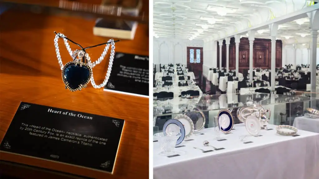 From left: A replica of the Heart of the Ocean and the dining room aboard Titanic | Photos: Exhibition Hub/Fever