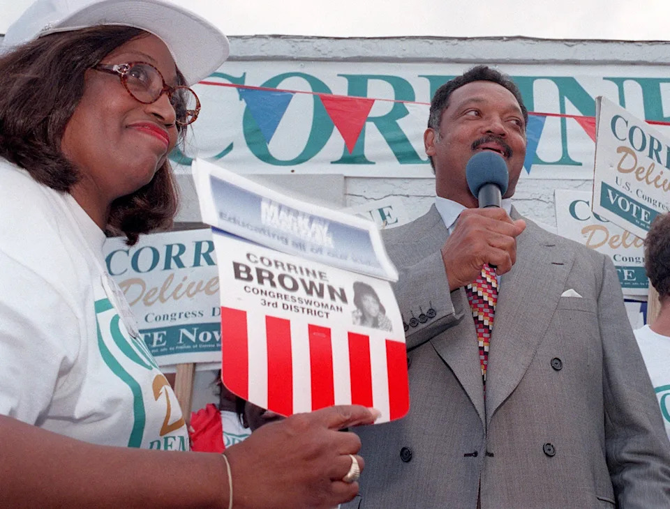 The Rev. Jesse Jackson was on hand Oct. 3, 1998, to aid U.S. Rep. Corrine Brown, left, in her quest for re-election. Brown held a rally at the Democratic Party headquarters on State Street in Jacksonville.