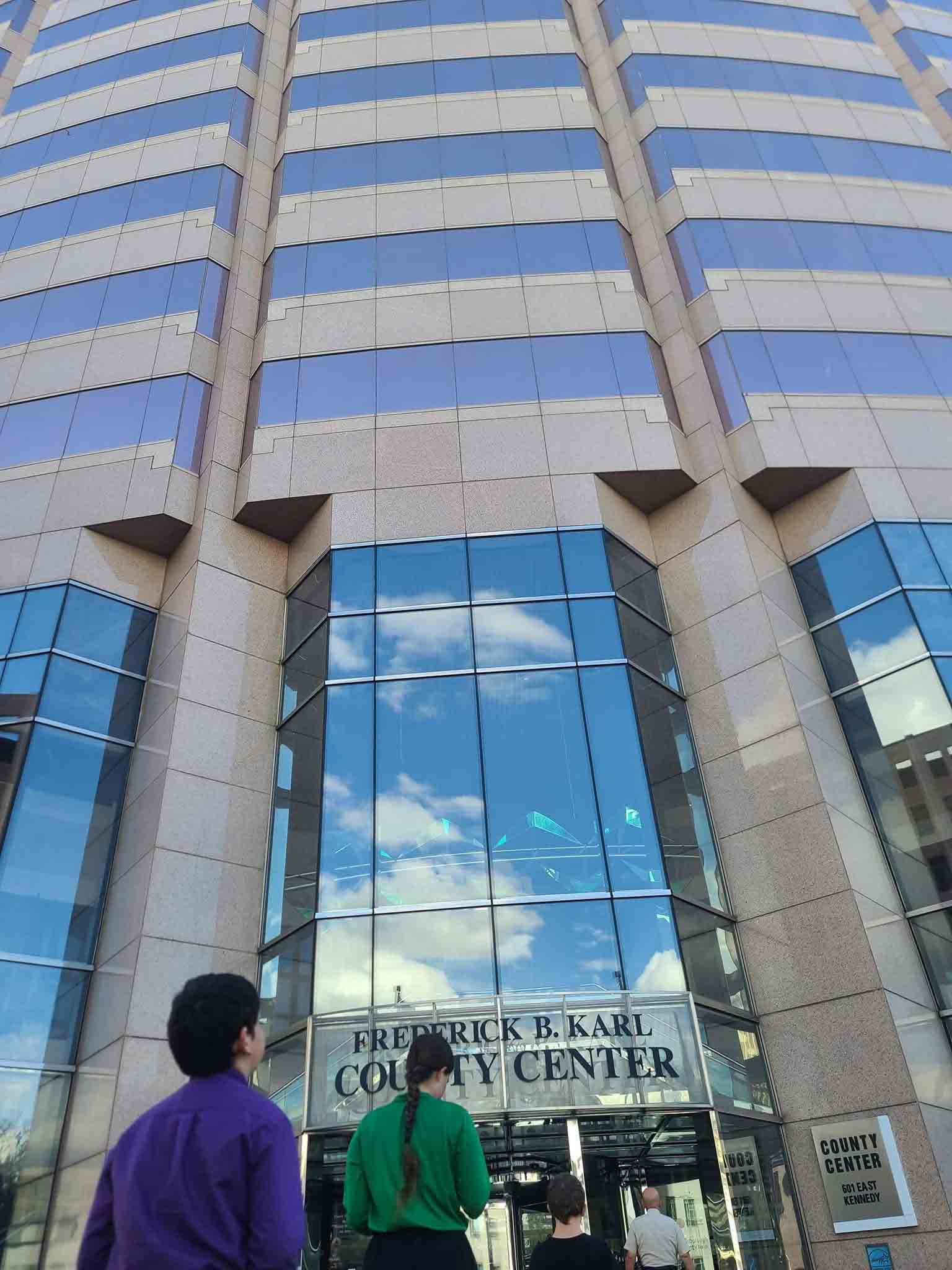 On-Target 4-H Club member Gabriel Holt, with his sister Eliana, entering the Frederick B. Karl County Center in Hillsborough County