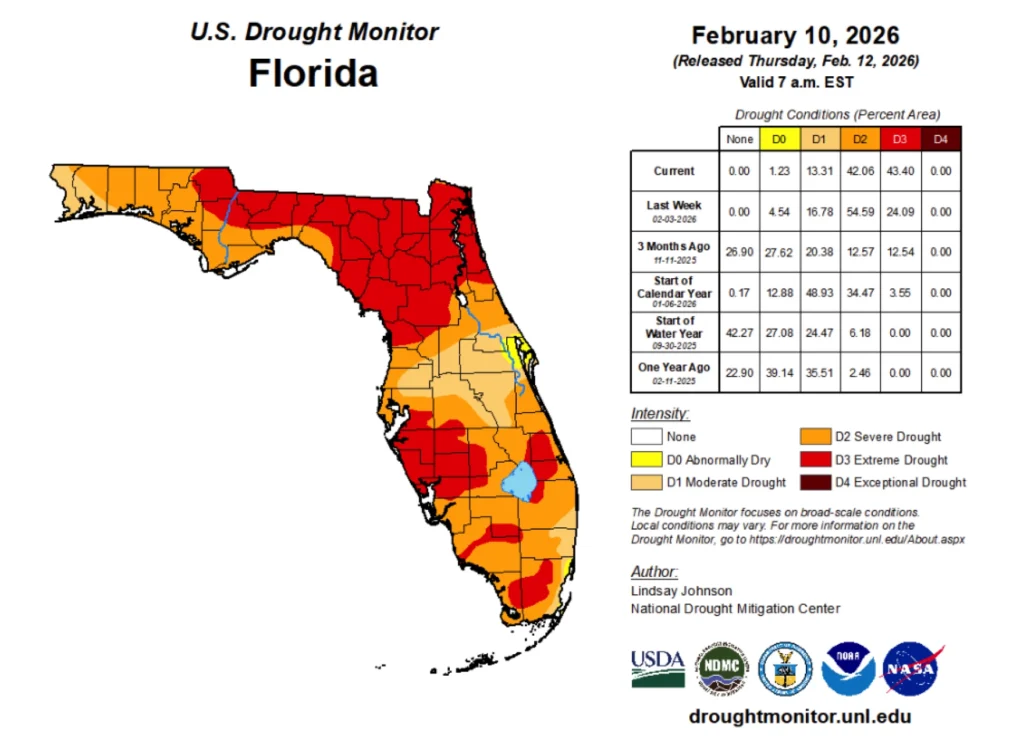 According to the phenology network, the Jacksonville-area is around four days earlier than average for growth, while Pensacola is more than a week ahead of schedule.