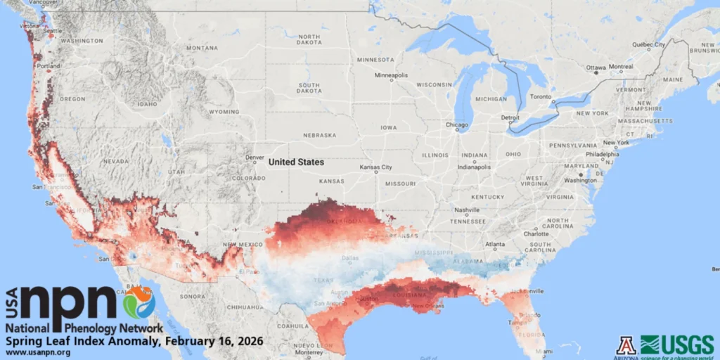 Data released by the USA National Phenology Network shows that most communities across the state were seeing the first signs of growth before late January’s Arctic blast that put a temporary halt on the activity.