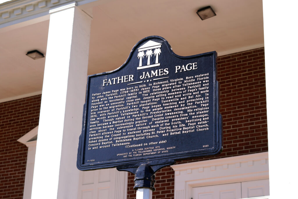 Historical marker honoring Father James Page, original pastor of Bethel MBC who became ordained as a minister in 1851. (Khalil-Lullah Ballentine/FAMUAN)