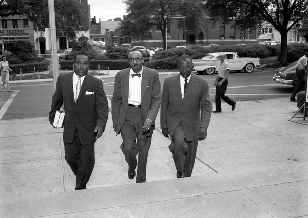 Francisco A. Rodriguez, Reverend C.K. Steele and Reverend Daniel B. Speed walk toward the courthouse in Tallahassee. (Florida Memory)