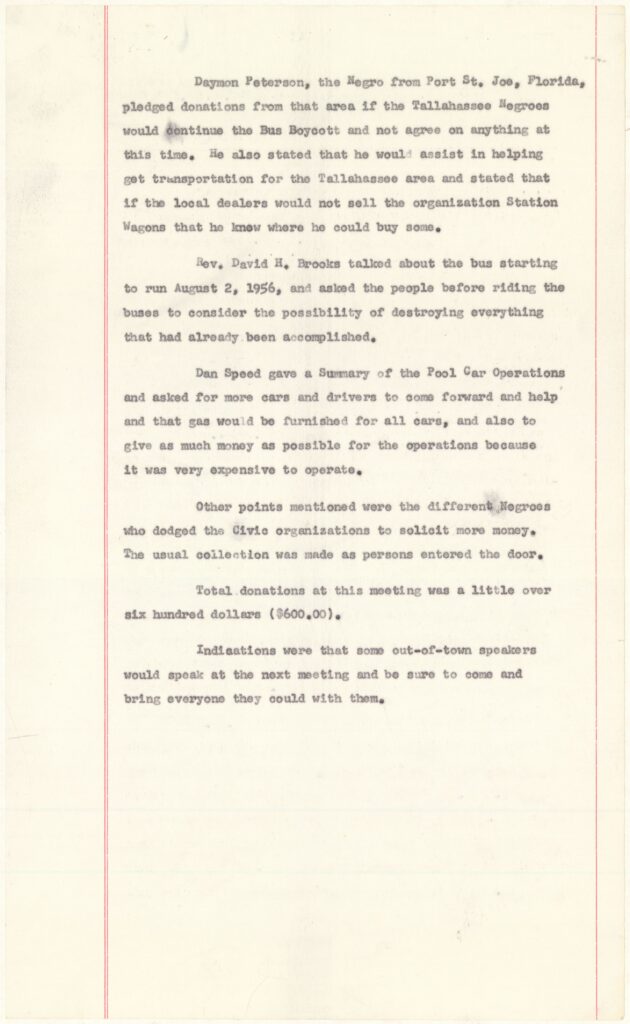 According to meeting reports documented on Florida Memory, Rev. Daniel D.B. Speed gave a summary and progress of the carpooling operations the ICC’s Aug. 1, 1956, meeting, asking more car owners to step forward to help. Within that meeting, the council amassed a little over $600 to support the carpool.