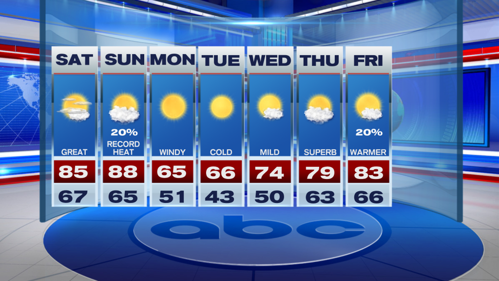 The heat won’t last though as a cold front moves through Sunday evening. Unfortunately, we won’t see much rain this go-around.