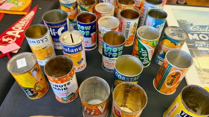 Brothers Alan and Curtis Boster flew down from Columbus, Ohio, to sling citrus bags and Florida orange juice cans, along with ceramic plates and felt pennants for places like Silver Springs and Miami’s Monkey Jungle. The pair have been traveling to Florida since they were children.