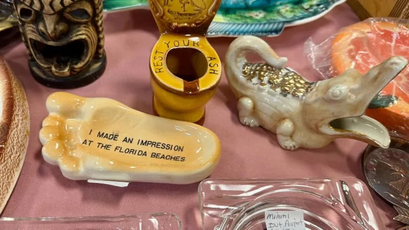 Floridania Fest, an annual market dedicated to vintage memorabilia, kicked off Friday at the Potter Building on the Sarasota Fairgrounds. Thousands of Old Florida trinkets were on display, from pamphlets and postcards for long-lost tourist attractions to felt pennants and ceramic flamingos.