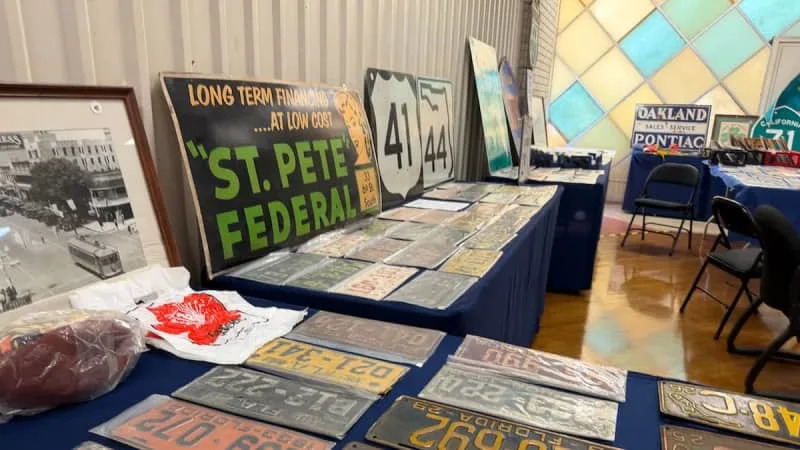 Jeff Francis has been collecting license plates for five decades and has a personal stockpile of roughly 35,000. He brought a few hundred plates, along with some vintage road signs and a Tampa Bay Times newspaper box, to Floridania Fest.