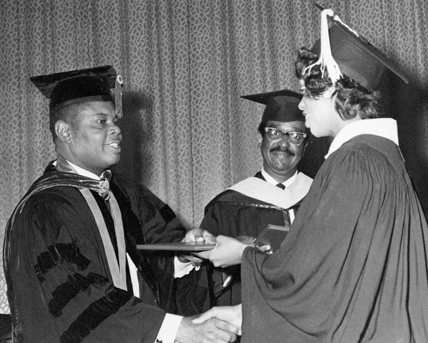 FAMU president Benjamin L. Perry presenting diploma to new graduate in Tallahassee.(State Archives of Florida)