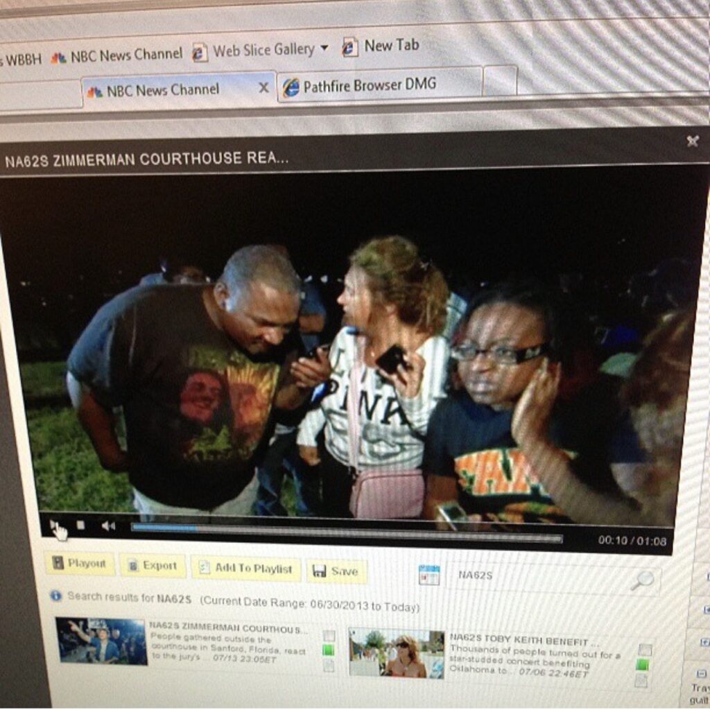 The image of Baker (far right) reacting to the George Zimmerman verdict in the NBC database in 2012. (Erica Baker)
