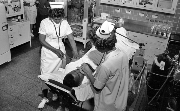 Nurses with patient at the FAMU Hospital in Tallahassee, 1965(State Archives of Florida/Finch)