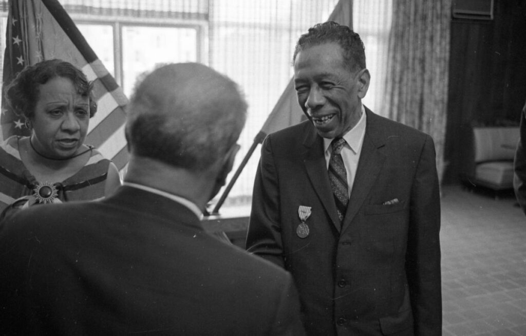 FAMU president Dr. George W. Gore being congratulated during award ceremony in Tallahassee.(State Archives of Florida)