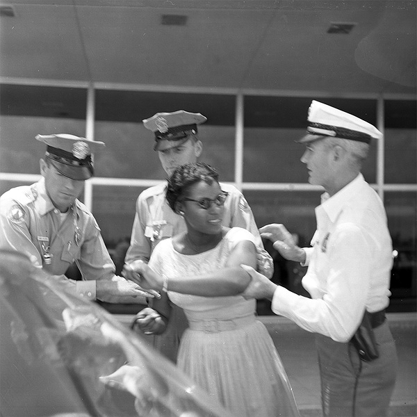 Priscilla Stephens (later Kruize), from CORE, being arrested at the Tallahassee Regional Airport.(State Archives of Florida)