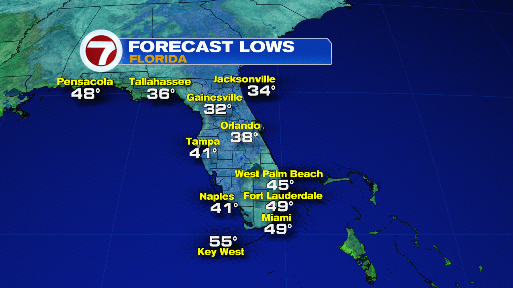 Recent weather has been highlighted by cold air connecting into all of Florida. It started after the passage of a strong Cold Front that crossed early in the week (late Sunday). It’s since evolved into a Cold Snap peaking Tuesday morning. Locations across Broward and Miami-Dade counties felt the upper 30’s (Weston and Redland) with the middle 40’s common across metro areas. This colder air was coming north-to-south around High Pressure.