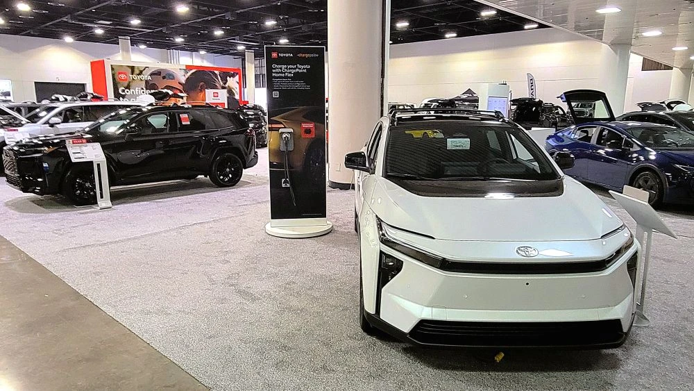 A Toyota bZ4x, at right, is one of a number of fully electric vehicles on display. | Dan Scanlan, Jacksonville Today