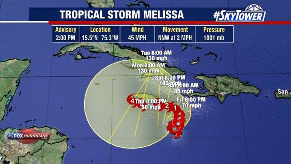 TAMPA, Fla. – Tropical Storm Melissa may appear to be struggling as it slowly swirls in the Caribbean, but it is expected to become a hurricane by Friday and a Category 4 storm next week.
