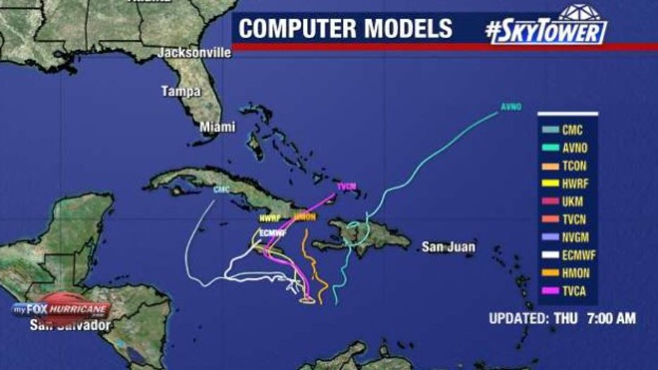 Some models have Tropical Storm Melissa making a turn to the north over Jamaica and Hispaniola, while others bring the center of the storm to Nicaragua in Central America.