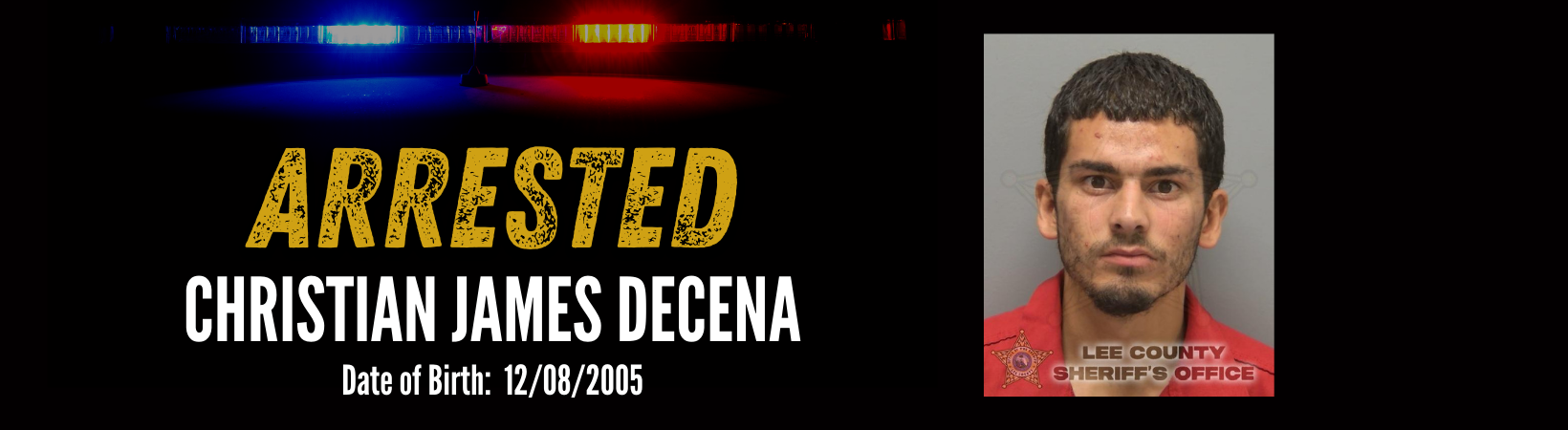 Christian James Decena was arrested and transported to the Lee County Jail, where he faces the following charges: