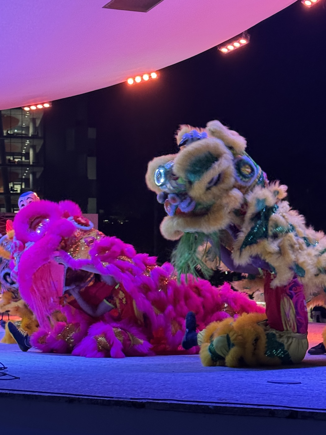 Lee Koon Hung Kung Fu lion dance performers at the Lakeside Patio stage on Feb. 20, 2026. Photo Credit // Olivia Attalla