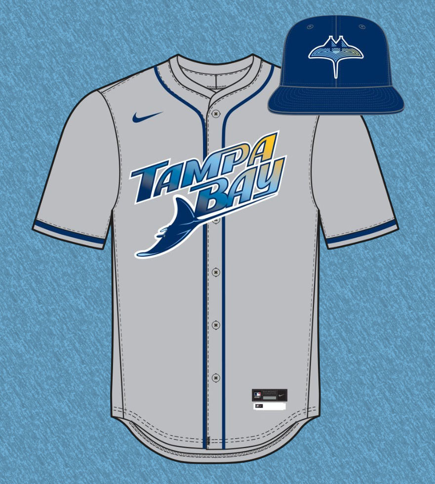 Alongside the announcement, the Rays shared four proposals for this new uniform, all of which were grey with “TAMPA BAY” across the chest in the style of their original 1998-2000 road jersey lettering. Let’s take a look at each of these…