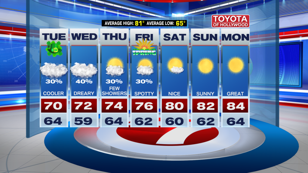 The good news is there is a light at the end of the tunnel. We turn sunny heading into the weekend with highs back in the 80s!