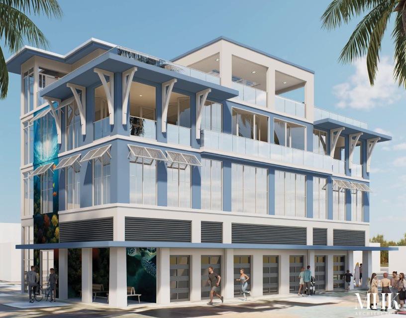 The plans refer to the ground floor infrastructure to support the street vendor space as part of helping to reestablish the “funky street bazaar character that historically defined this district while the western façade will be dedicated to a permanent art installation designed by a local Fort Myers Beach artist.”
